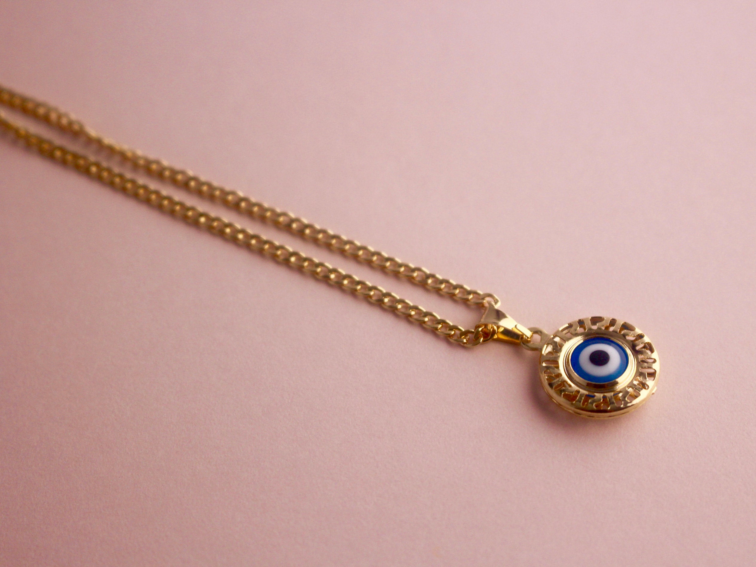 Evil Eye Necklace / 10k 14k 18k Solid Gold Diamond Evil Eye Etsy . £315.00 View all 8 products Integrity of Materials The pendant's 18k gold-plated finish is set with cubic zirconia, and you can choose between five of our best-selling chains to set it on