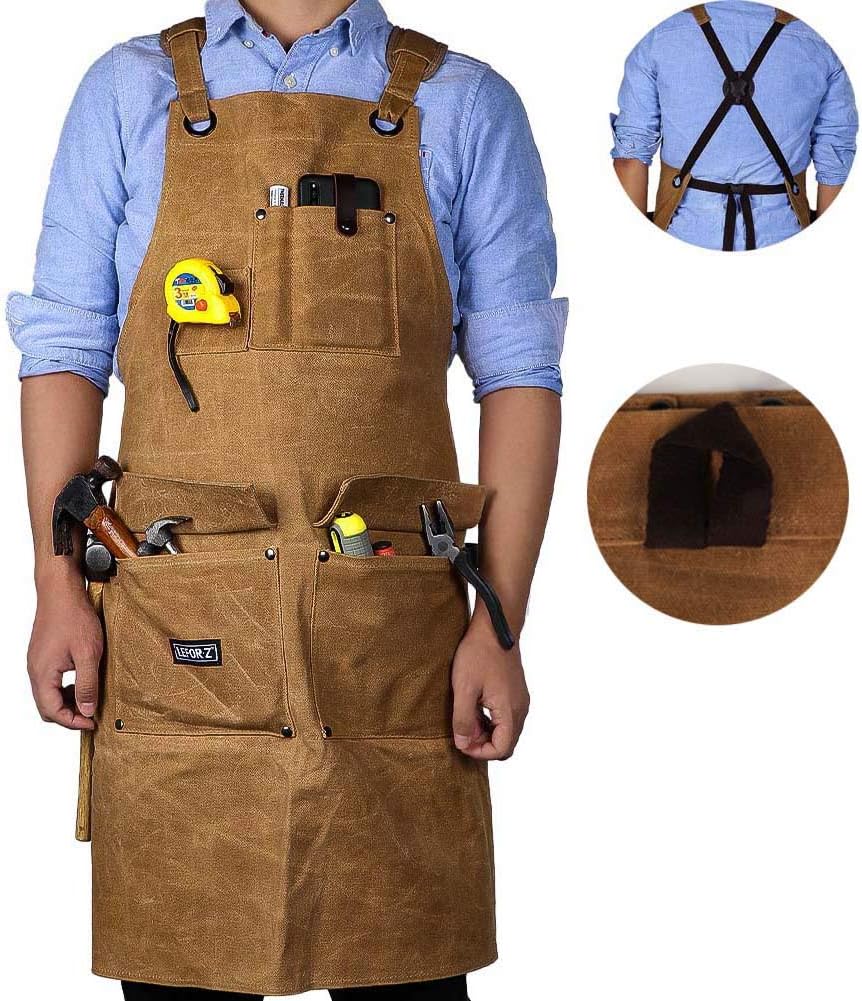 Woodworking Apron Set - Gift Set Includes: Apron*1&Canvas bag*1,Heacy Duty 23 oz Woodworking Workshop Apron, Waterproof Wax premium canvas bag,which can be easily stored in the work apron This item: Leather Welding Apron, QeeLink Heat & Flame-Resistant Heavy Duty Work Apron with 6 Tool Pockets - Cross Back Adjustable M to XXL for Men (24 x 36 inch) $42.39 $ 42 12-Pocket Heavy Duty Construction Work Apron Made of durable split leather and features heavy-duty web handles for easy adjustments and carrying